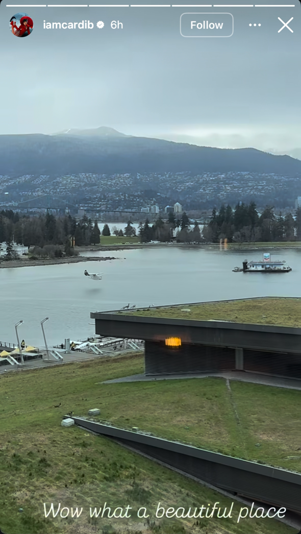 “Wow Vancouver, you are gorgeous!” she gushed in a video shared to her social media profile @iamcardib, which has more than 164 million followers.