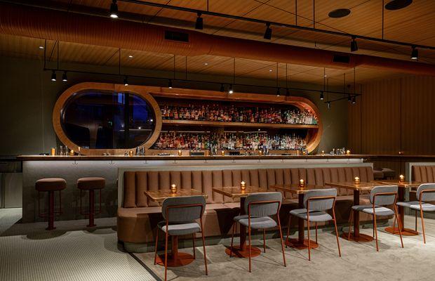 “The Deco-ish space, a craft beer bar and Italian restaurant in previous lives, got a copper-accented, sunset palate glow-up, courtesy Mexican architect Héctor Esrawe.”